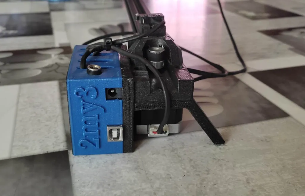 - Montage du chariot coulissant avec un système de courroies GT2 pour transmettre le mouvement des moteurs au slider.
