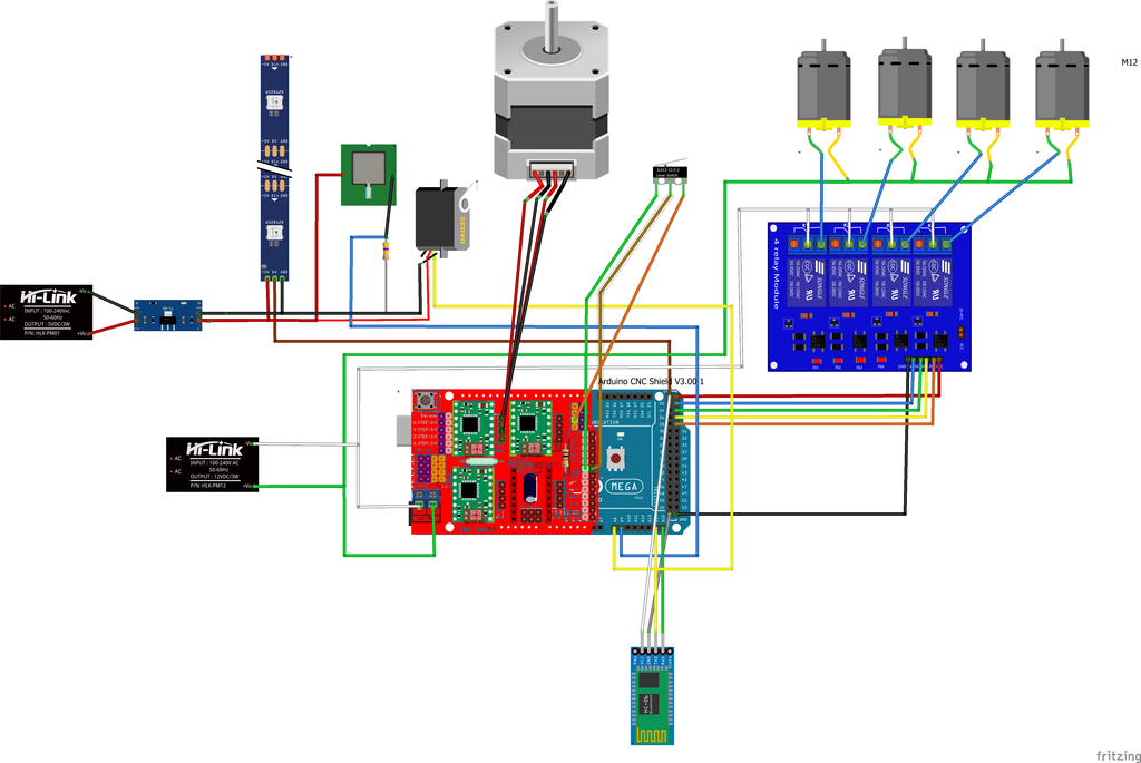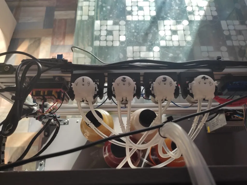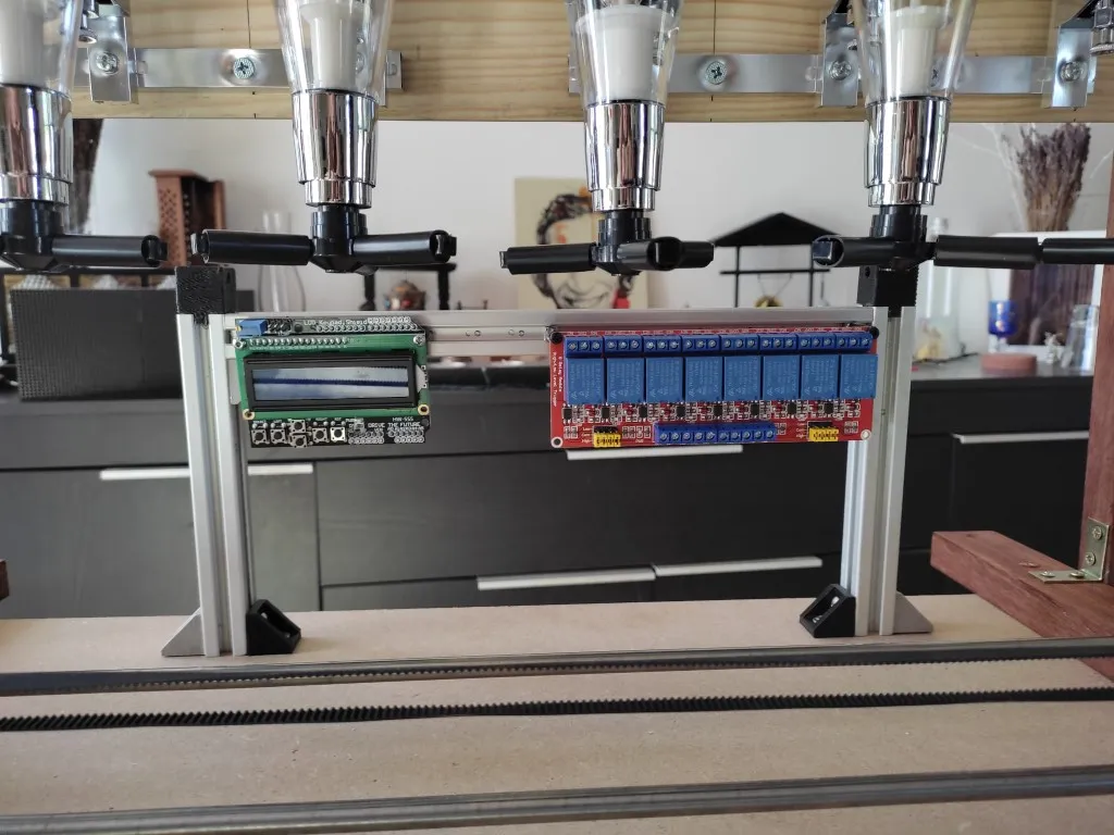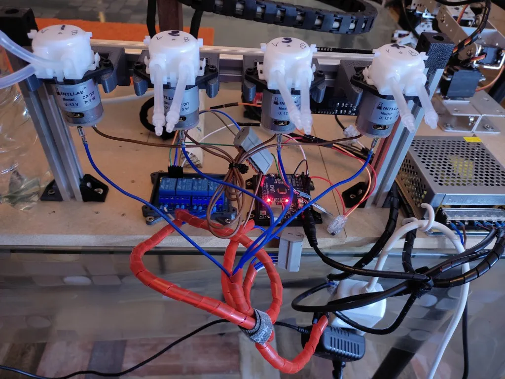 - Hard drinks (alcool) : dispensés à l’aide de distributeurs activés par un servomoteur HS-422, garantissant une distribution précise des alcools forts.
