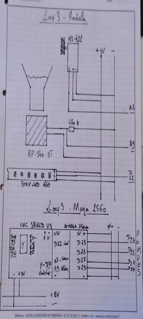 Toutes les pièces nécessaires, y compris les supports et les connecteurs, ont été conçues en PLA et imprimées en 3D. Chaque pièce a été testée pour s’assurer de sa robustesse et de sa compatibilité avec l’ensemble du système.