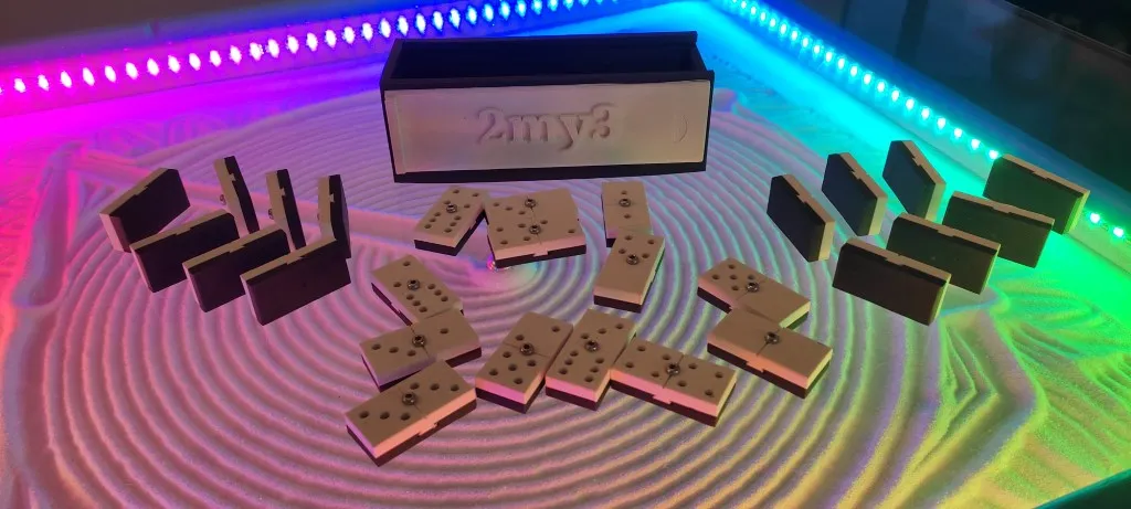 Jeu de Dominos réalisés en pièces 3d PLA, avec une tête centrale pour donner un aspect hand spinner.
