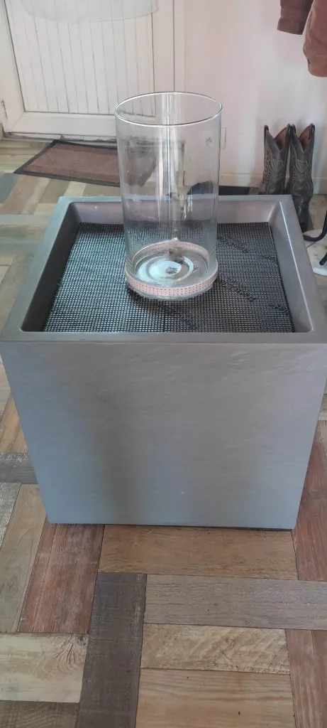 - Récipient principal : Une vasque large et profonde (en métal, verre ou céramique) capable de contenir de l’eau.