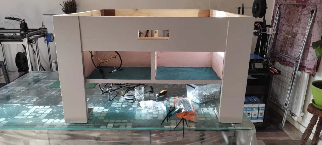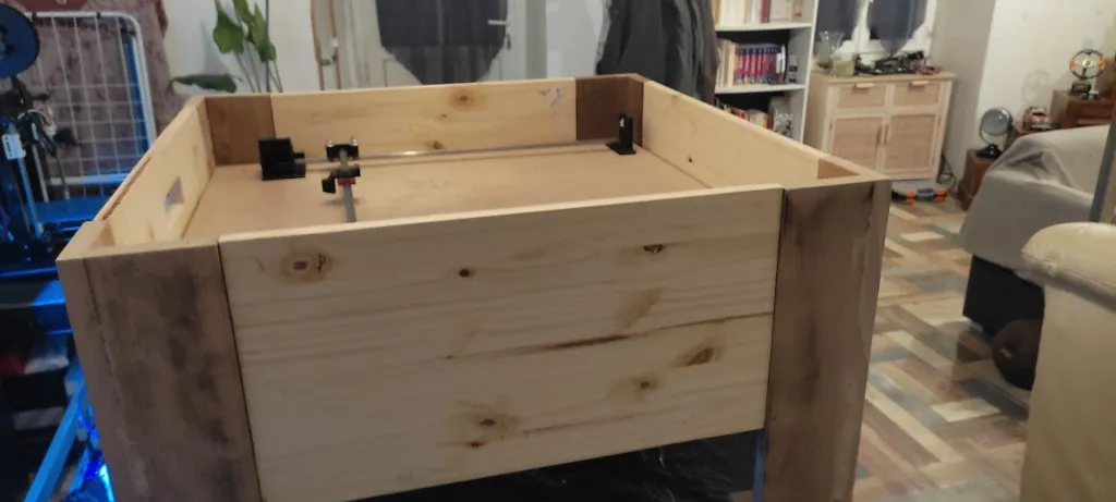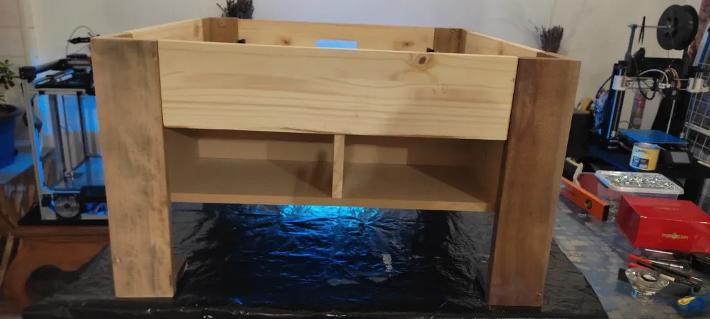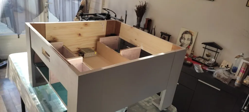 Cette partie englobe la structure principale de la table basse, réalisée avec des matériaux en bois soigneusement sélectionnés. La finition est assurée par l’application de peintures, de vernis, ou même de textiles, pour un rendu esthétique et harmonieux.