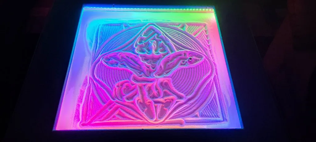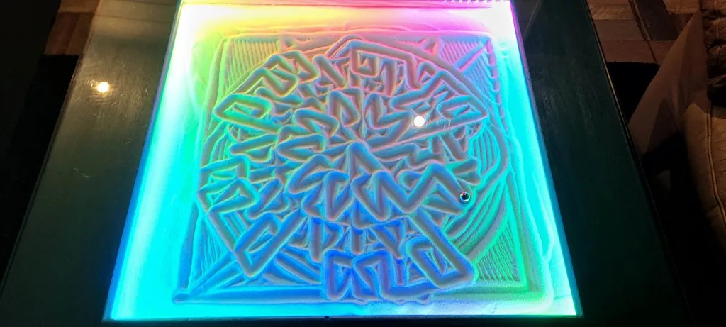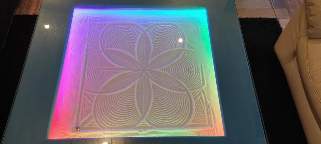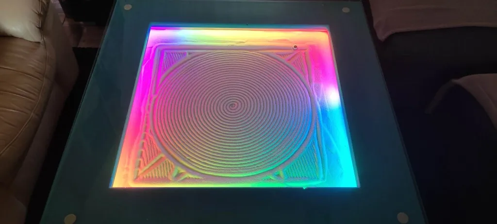 La table a déjà permis de créer des motifs captivants, ajoutant une dimension artistique et relaxante à l’environnement.