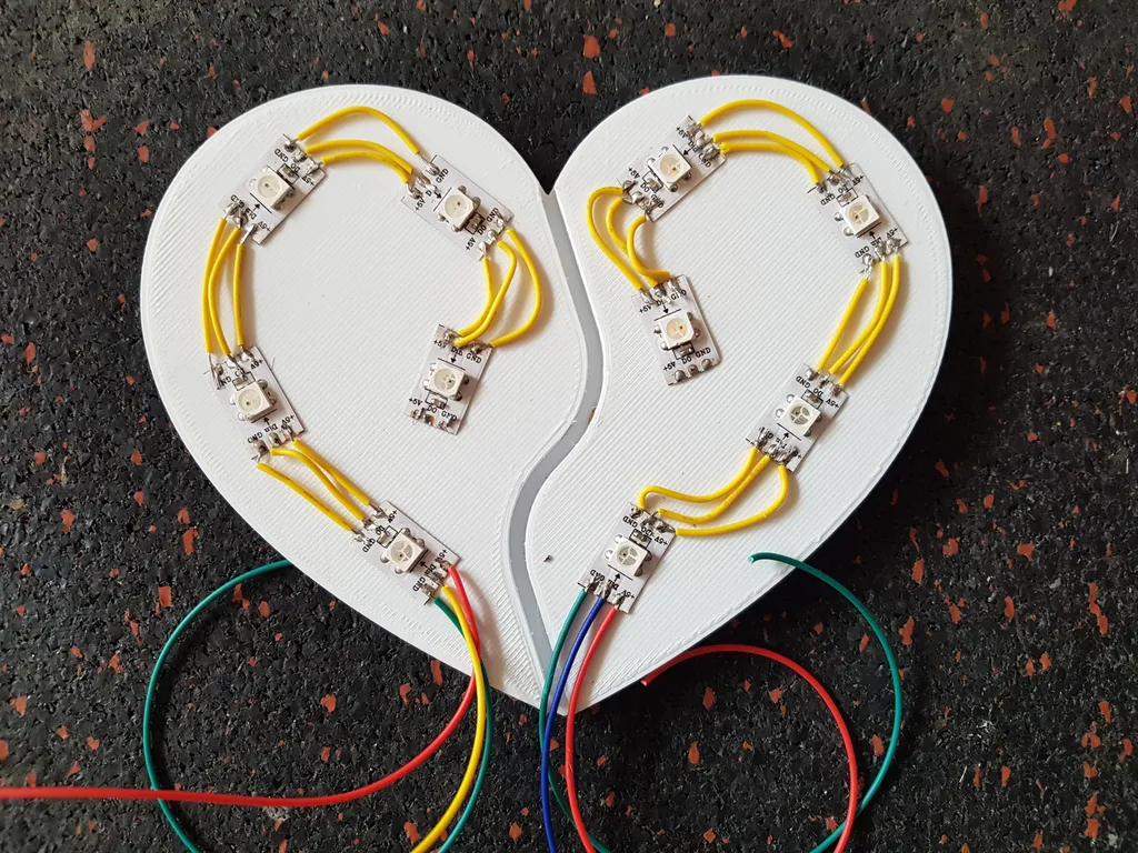 - Structure : Une forme de cœur réalisée avec des LED 5V.