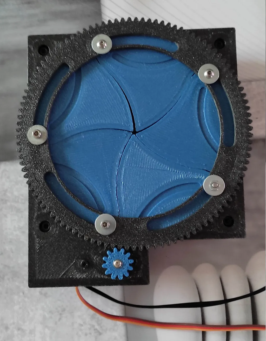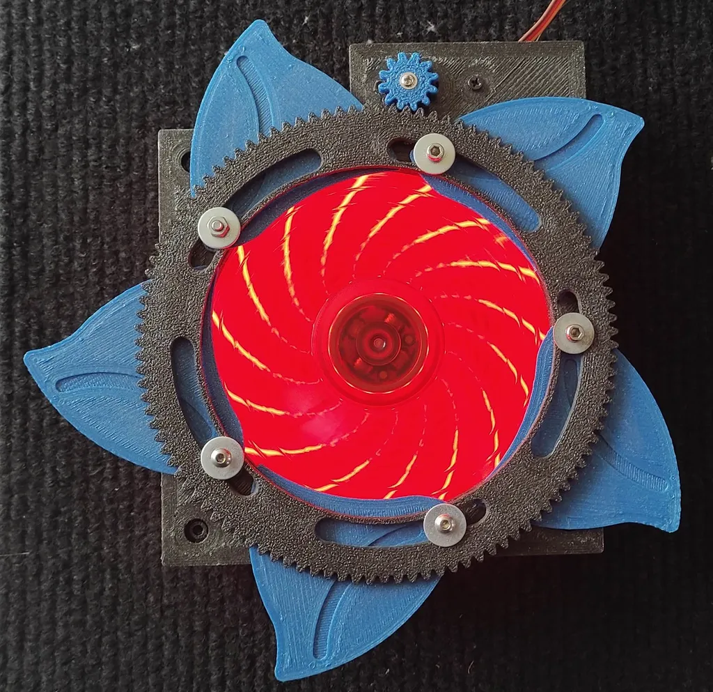 L’Iris Cover est un capot motorisé conçu pour un ventilateur de 120 mm. Réalisé avec des pièces imprimées en 3D en PLA, cet accessoire allie design et fonctionnalité.
